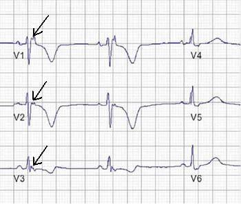 Posterior MI: This one is tricky, and the EKG is not the definitive diagnostic tool for this type of MI. But, look in V1 & V2 for tall R waves that will not be accompanied by right axis deviation. This is often confused with right ventricular hypertrophy. Careful with this one!!