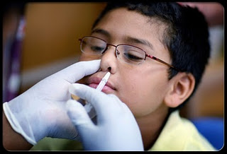 In one large study among children aged 15-85 months, the seasonal nasal-spray flu vaccine LAIV (FluMist®) reduced the chance of influenza illness by 92% compared with placebo. In a study among adults, the participants were not specifically tested for influenza. However, the study found 19% fewer severe febrile respiratory tract illnesses, 24% fewer respiratory tract illnesses with fever, 23-27% fewer days of illness, 13-28% fewer lost work days, 15-41% fewer health care provider visits, and 43-47% less use of antibiotics compared with placebo.