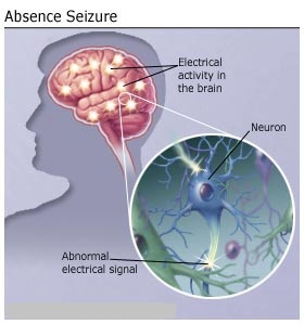 Absence seizures are brief episodes of staring. (Although the name looks like a regular English word, your neurologist may pronounce it ab-SAWNTZ.) Another name for them is petit mal (PET-ee mahl). During the seizure, awareness and responsiveness are impaired. People who have them usually don’t realize when they’ve had one. There is no warning before a seizure, and the person is completely alert immediately afterward.