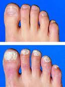 Brittle toenails are a typical symptom of a fungal nail infection known as onychomycosis. Fungal infections of the toenails can be superficial or involve the entire nail bed. If the infection is only superficial, the nail can develop white patches that gradually expand to involve larger areas of the nail. The toenail can become rough and brittle, but generally doesn’t separate from the nail bed as long as the infection is only on the surface. When fungal infection is deeper, the nail may appear discolored, thickened, and brittle with classic “crumbling toenail†symptoms. This deeper type of fungal infection is the one most likely to result in the nail being lost.