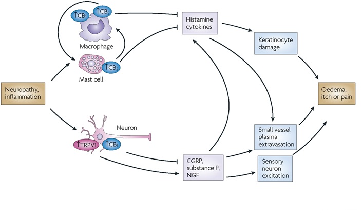 The VR1 ion channel has subsequently been shown to be a member of the superfamily of TRP ion channels, and as such is now referred to as TRPV1. There are a number of different TRP ion channels that have been shown to be sensitive to different ranges of temperature and probably are responsible for our range of temperature sensation. Thus, capsaicin does not actually cause a chemical burn, or indeed any direct tissue damage at all, when chili peppers are the source of exposure. The inflammation resulting from exposure to capsaicin is believed to be the result of the body’s reaction to nerve excitement. For example, the mode of action of capsaicin in inducing bronchoconstriction is thought to involve stimulation of C fibres culminating in the release of neuropeptides. Essentially, the body inflames tissues as if it has undergone a burn or abrasion and the resulting inflammation can cause tissue damage in cases of extreme exposure, as is the case for many substances that cause the body to trigger an inflammatory response.