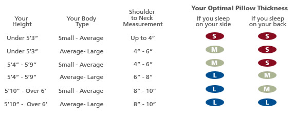 Neck Pillows come in different sizes. It is important for you to choose the correct size neck pillow depending on whether you are a back or side pillow. If you choose one that is either too small or too large, this will result in crooked alignment and discomfort. Please refer to the size chart below to identify the size that is right for you!