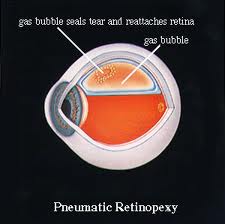 With no new fluid passing through the retinal tear, fluid that had previously collected under the retina is absorbed, and the retina is able to reattach itself to the back wall of your eye. Depending on where the retinal detachment is located in your eye, you may need to hold your head in a certain position for several hours in order to keep the bubble in place. With these two surgical procedures, after a couple of weeks, laser surgery or cryopexy is used to “weld” the retina back into place.