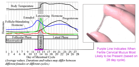 Normally the mucous is a protective barrier, but during the most fertile time of your cycle, it allows sperm to get through the cervix, up to the uterus, and then to the fallopian tubes for a rendezvous with your egg. Using clean fingers, or if you prefer, toilet paper, you can examine your cervical fluid. Prior to ovulation, during non-fertile periods, you will experience a dryness (or lack of cervical mucus). Gradually, as you approach ovulation, the cervical mucus will increase, though the consistency will be “sticky†and the color will be white, yellow, or cloudy in nature.