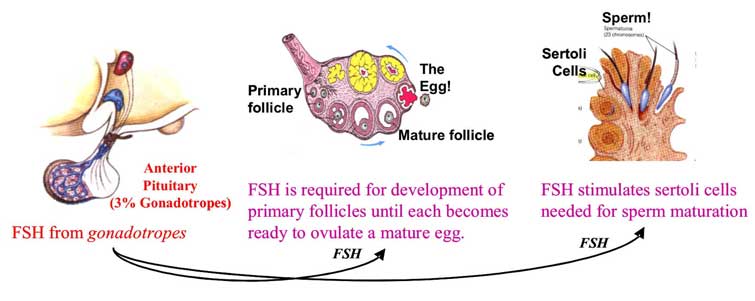 Diminished secretion of FSH can result in failure of gonadal function (hypogonadism). This condition is typically manifested in males as failure in production of normal numbers of sperm. In females, cessation of reproductive cycles is commonly observed. Conditions with very low FSH secretions are: