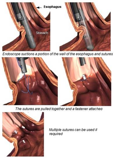 This procedure uses the combination of the weakened lower esophageal sphincter and sutures to create a barrier in order to prevent the backup of stomach acid.